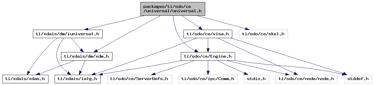#include <ti/xdais/dm/xdm.h>#include <ti/xdais/dm/iuniversal.h>#include <ti/sdo/ce/Engine.h>#include <ti/sdo/ce/visa.h>#include <ti/sdo/ce/skel.h>